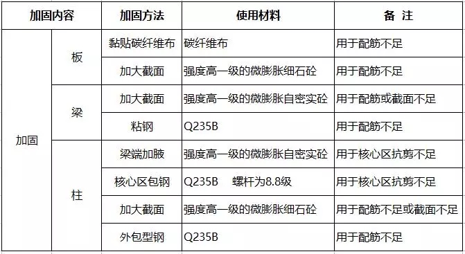 主要結(jié)構(gòu)構(gòu)件的加固方式